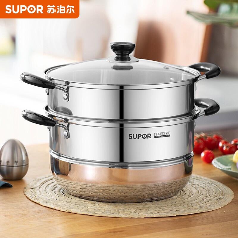 苏泊尔好帮手不锈钢双层复底蒸锅26cm